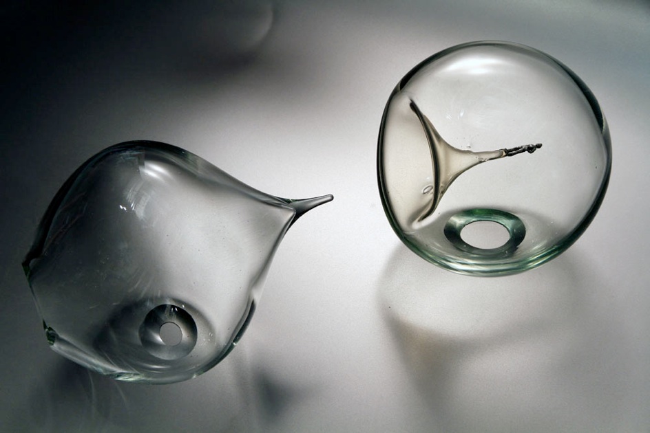 Creation / Schöpfungfrei geformtes, farbloses Glas; gegossene Silberfigur, zweiteilig, free shaped clear glass and cast silver figure